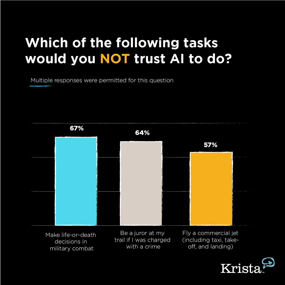 - 67% wouldn’t want AI to make life-or-death decisions in combat.
