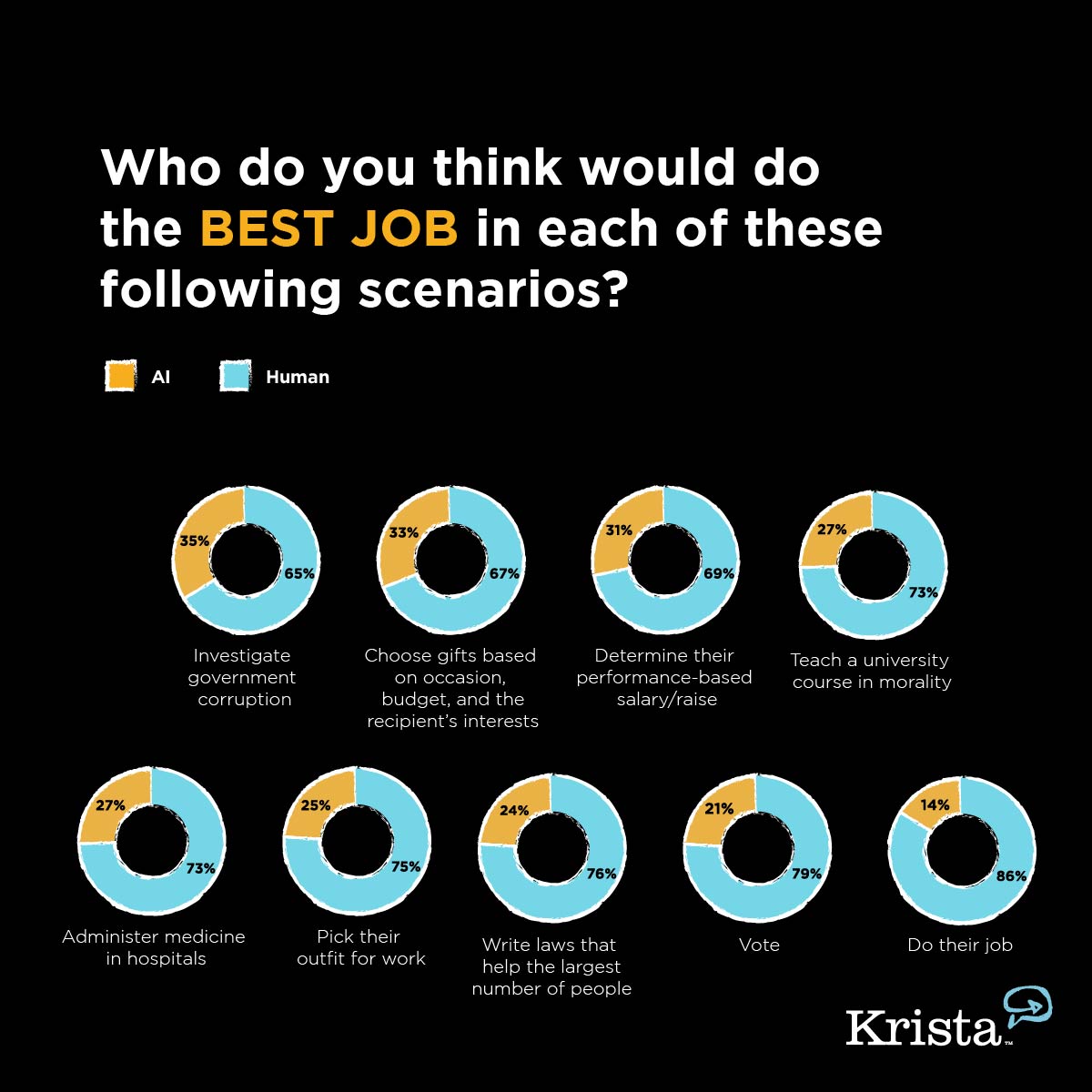 - When presented with many other scenarios that directly or indirectly affect them, Americans still trust humans over AI by a wide margin.